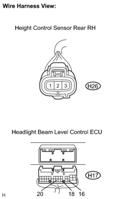 (a) Disconnect the H26 connector of height control sensor sub-assembly and the H17 connector of headlight leveling ECU assembly.