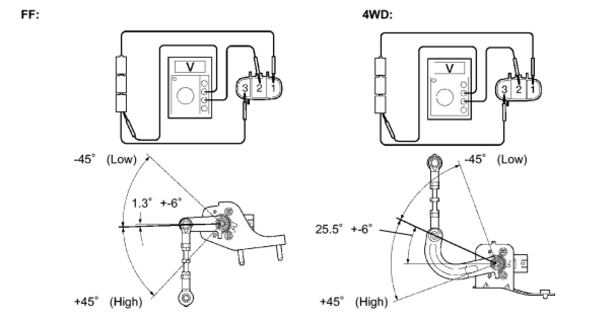 The headlight beam level control ECU receives the height control sensor signal from the height control sensor sub-assembly or headlight control ECU.