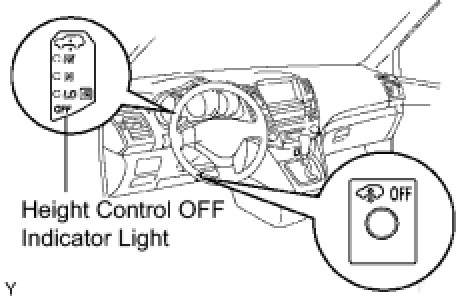 HINT: In order to stop vehicle height control for the vehicles with the air suspension system, press the height control OFF switch and make sure that the height control OFF indicator light is illuminating before jacking up the vehicle.