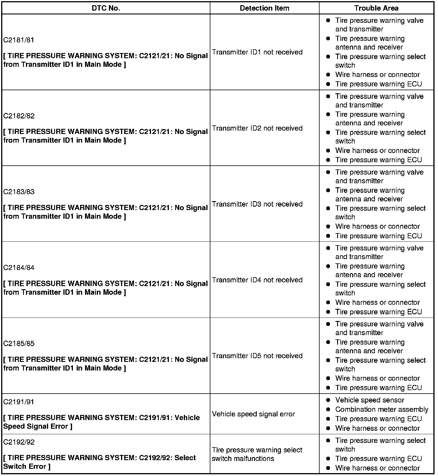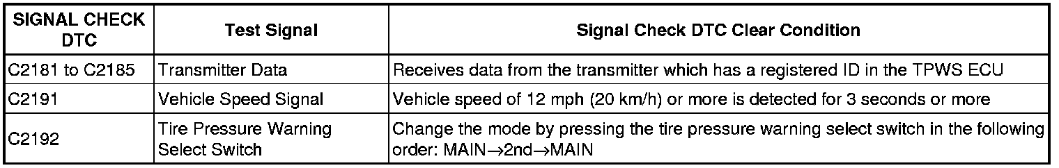 - When entering signal check mode, the tire pressure warning ECU sets all the signal check DTCs first.