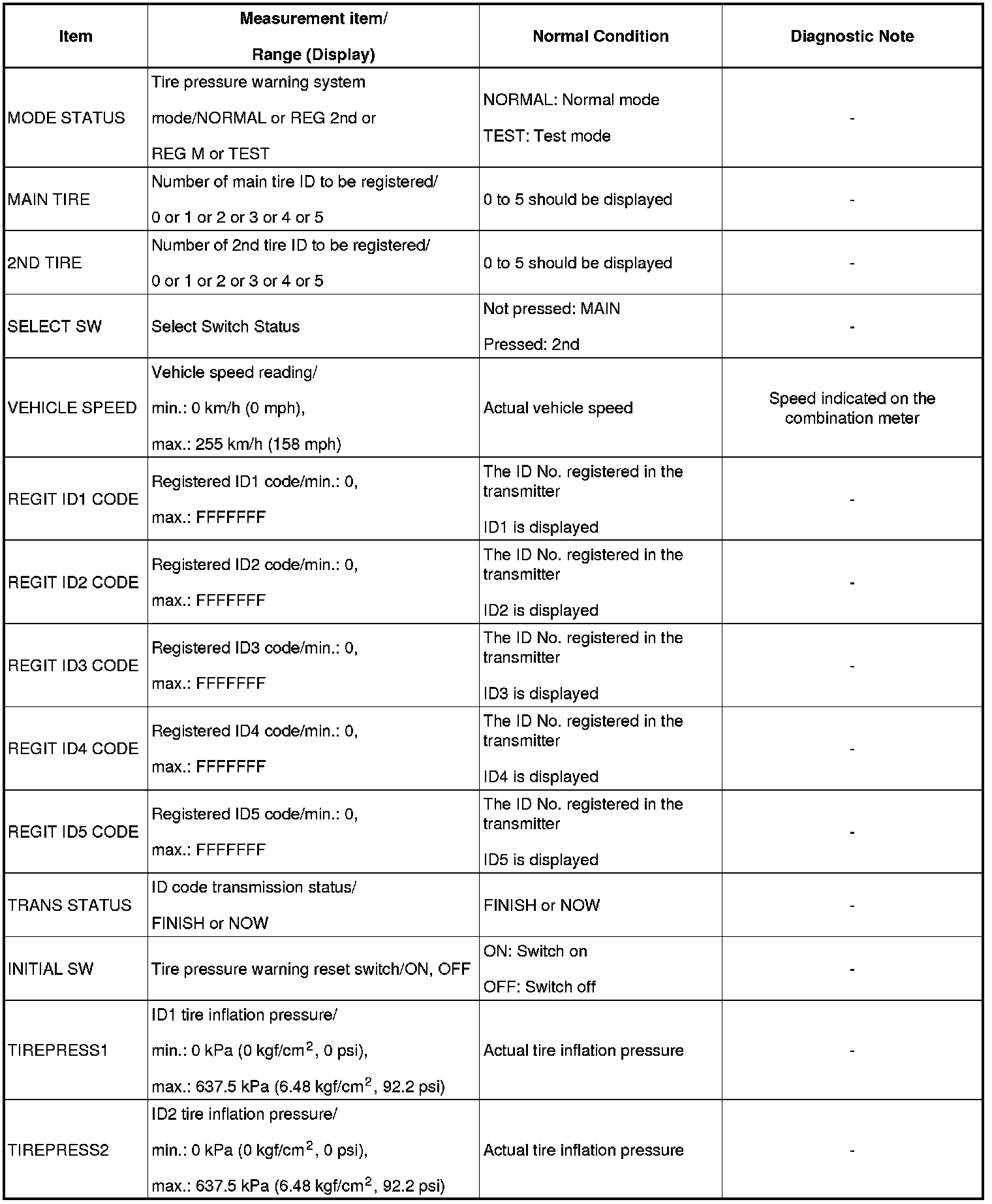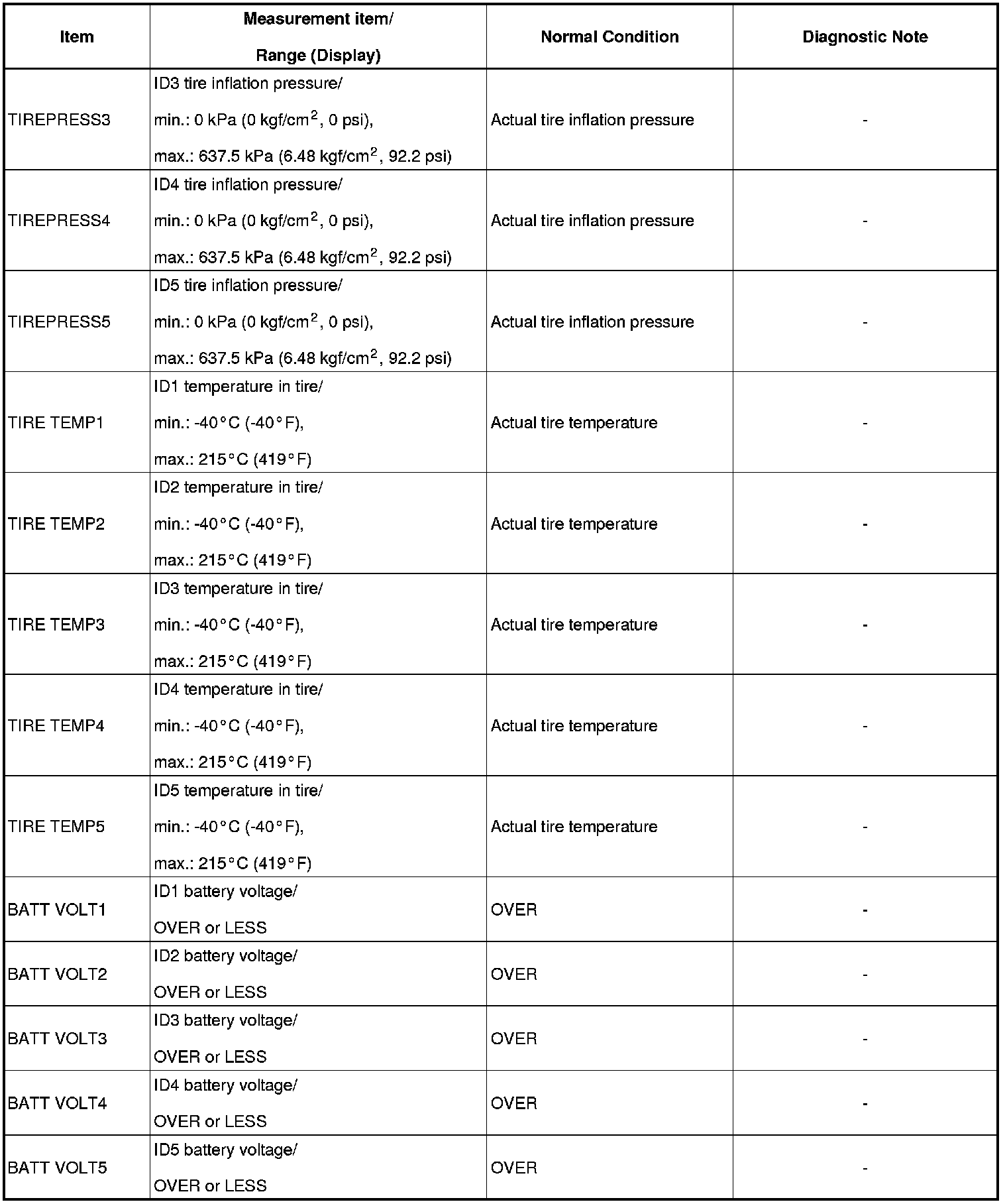 TIRE AND WHEEL: TIRE PRESSURE WARNING SYSTEM: DATA LIST / ACTIVE TEST