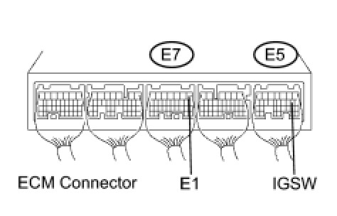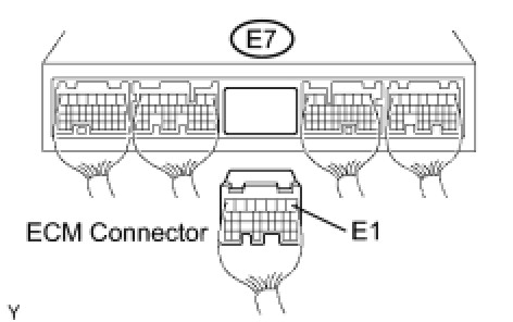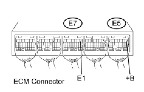 (b) Measure the voltage between the terminals of the E5 and E7 ECM connectors.