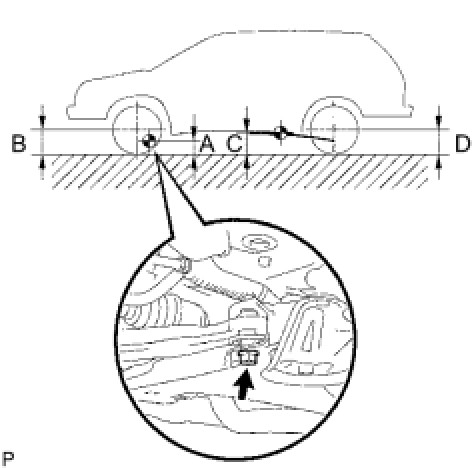 NOTE: Before inspecting the wheel alignment, adjust the vehicle height to the specified range.