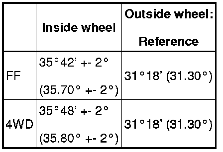 If the right and left inside wheel angles differ from the specified value, check the right and left rack end lengths.