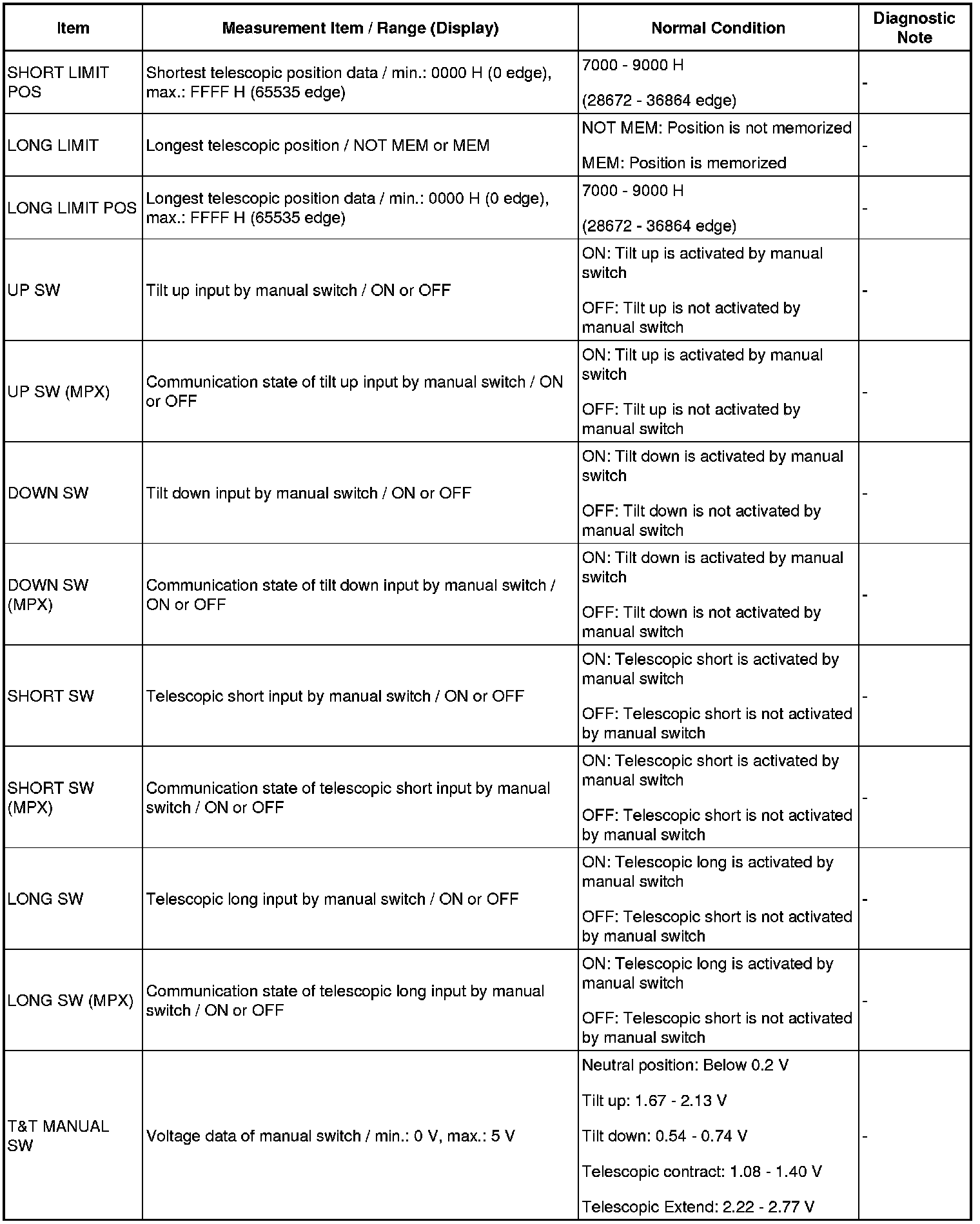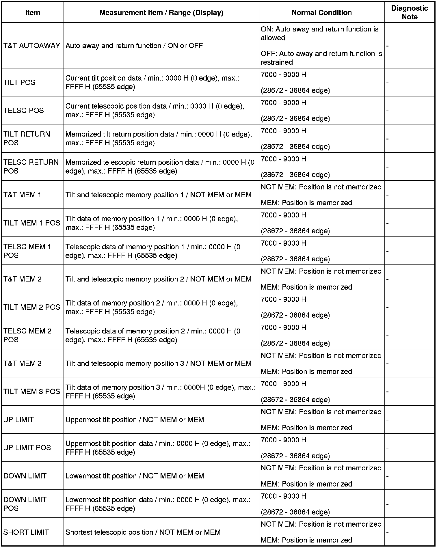 STEERING COLUMN: POWER TILT AND POWER TELESCOPIC STEERING COLUMN SYSTEM: DATA LIST / ACTIVE TEST