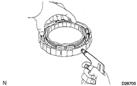 (b) Using a screwdriver, remove the snap ring.
