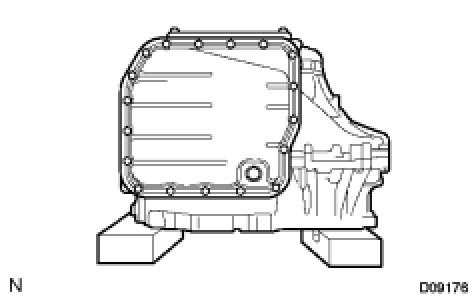 (a) Support the valve body assembly and remove the 17 bolts and valve body assembly.