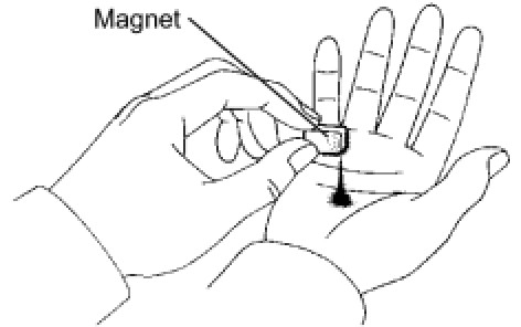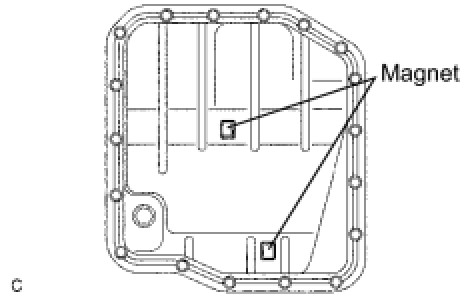 (b) Remove the 2 magnets from the oil pan.