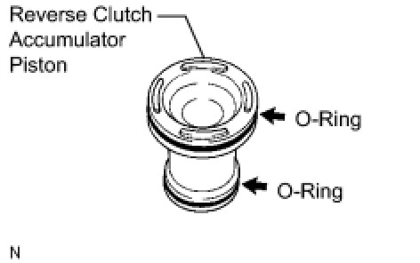 (b) Remove the 2 O-rings from the reverse clutch accumulator piston.