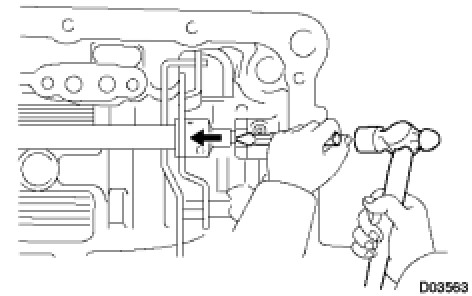 HINT: Slowly drive out the pin so that it will not fall into the transaxle case.