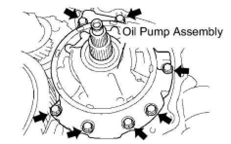 (a) Remove the 7 bolts and oil pump from the transaxle case.
