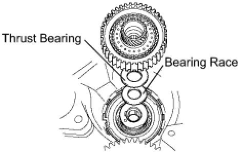 (a) Remove the underdrive clutch assembly, thrust bearing, and bearing race from the transaxle case.