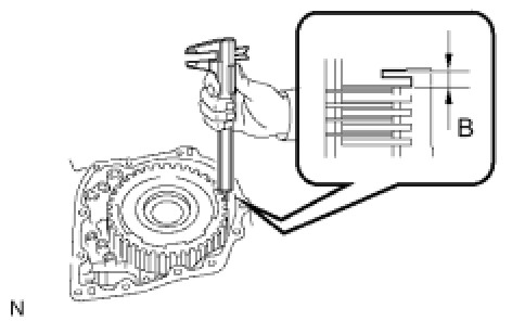 (a) Using vernier calipers, measure the distance between the disc surface and the contact surface of the 2nd brake cylinder and transaxle case (Dimension A).