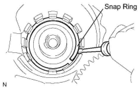 NOTE: Secure the snap ring so that the ends can be seen through the groove of the transaxle case.