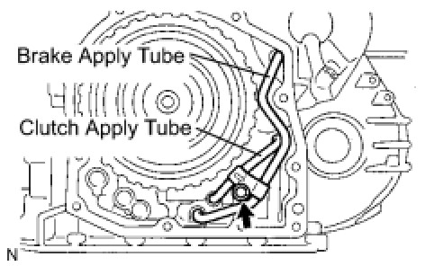 NOTE: Make sure to install the clamp to the apply tube before installing the apply tube to the transaxle case. This prevents the apply tube from being deformed or damaged.