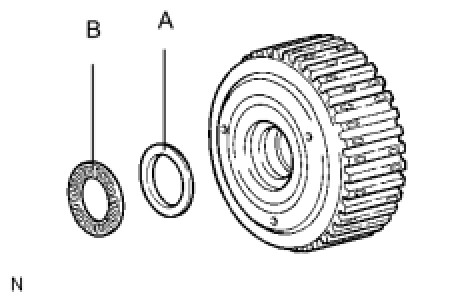 (f) Calculate the end play using the following formula. Select a thrust bearing which satisfies the end play and install the selected bearing.