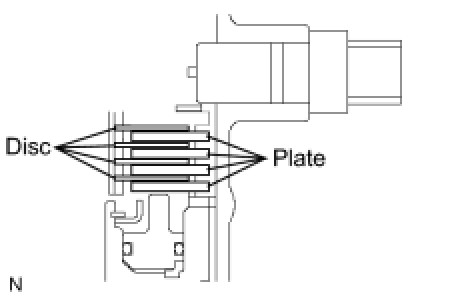 (b) Install the 4 discs and 4 plates to the transaxle case.
