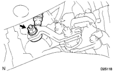 (d) While pushing the control cable end up with the shift lever in the N position, install it to the control shaft lever with the nut.