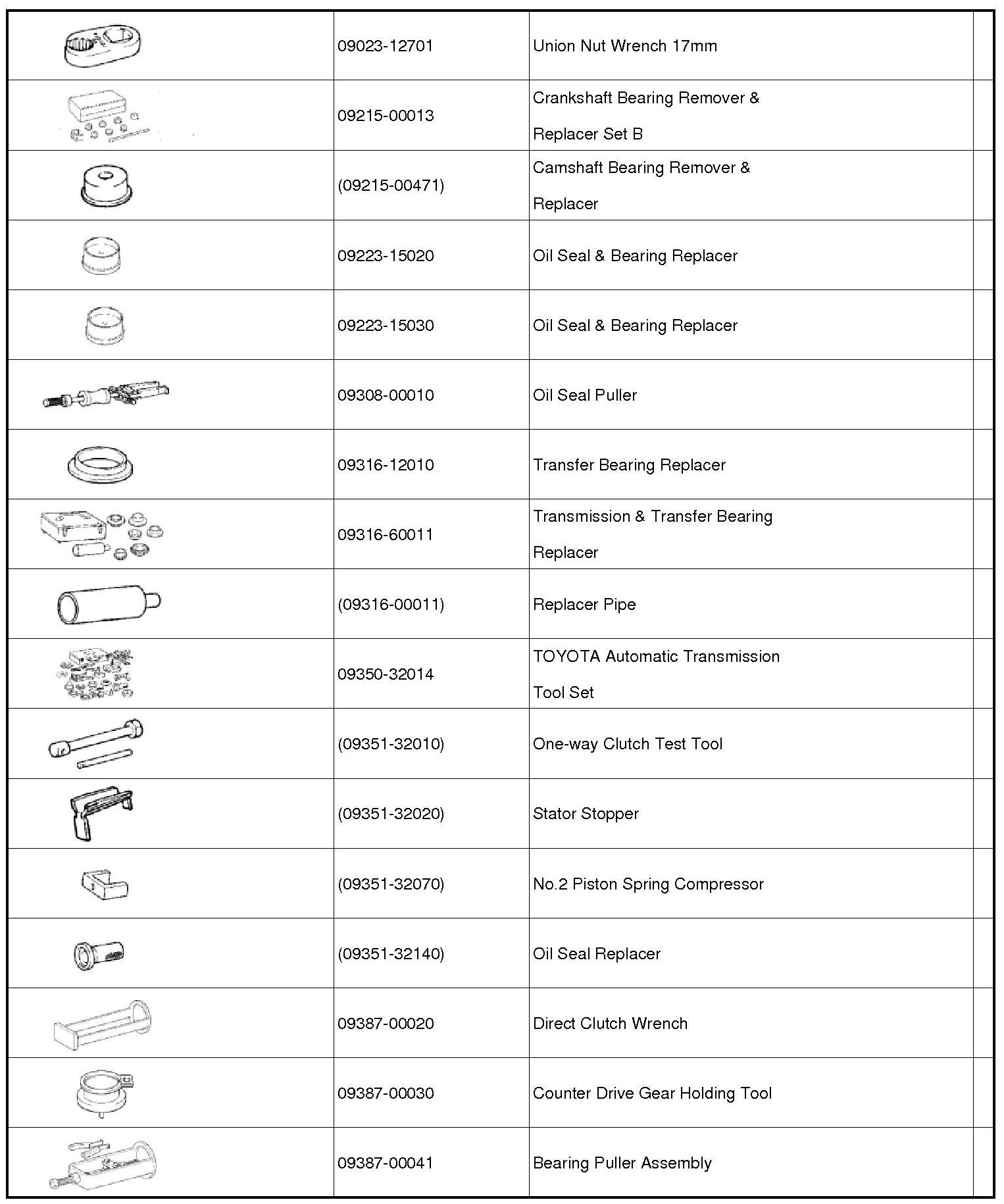 PREPARATION: U151E AUTOMATIC TRANSAXLE: SST