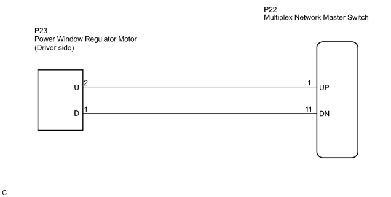 2. CHECK WIRE HARNESS (WINDOW REGULATOR MOTOR - MULTIPLEX NETWORK MASTER SWITCH)