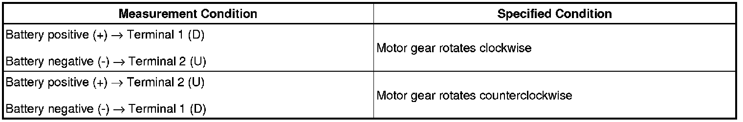 (b) Apply battery voltage to the motor connector according to the table below.