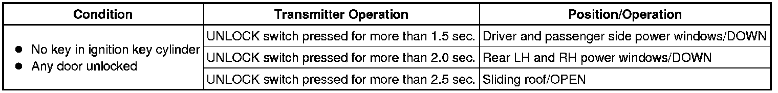 - MANUAL UP function using the driver side door lock key cylinder