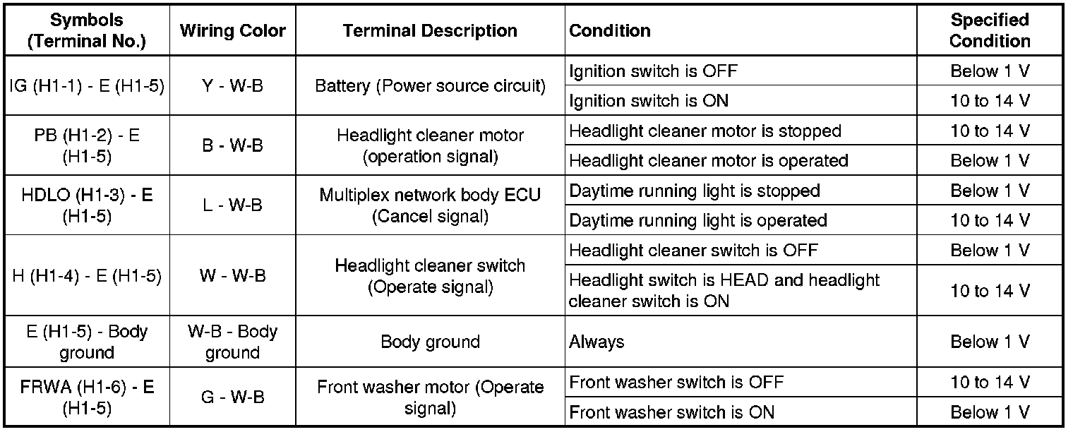 WIPER AND WASHER SYSTEM: TERMINALS OF ECU