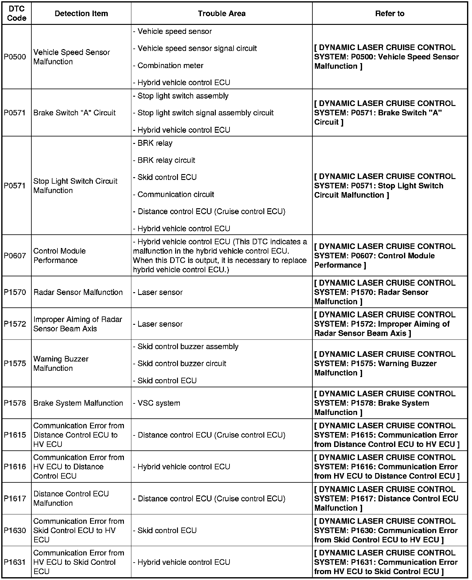 DIAGNOSTIC TROUBLE CODE CHART