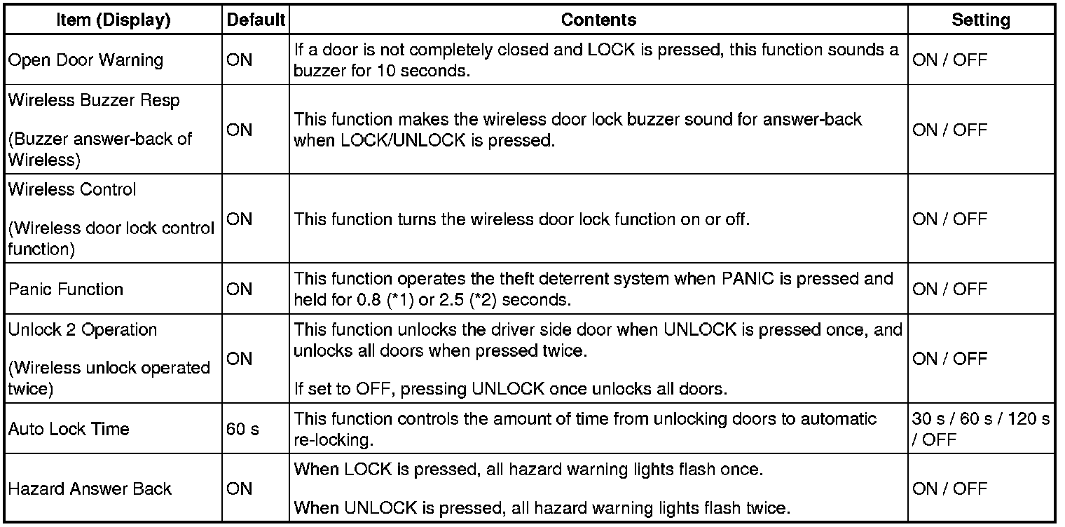 (*2): without Power Back Door