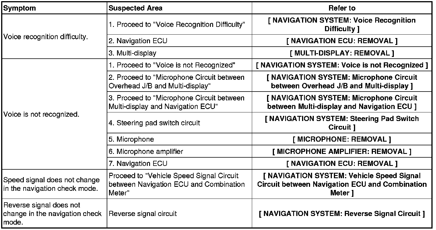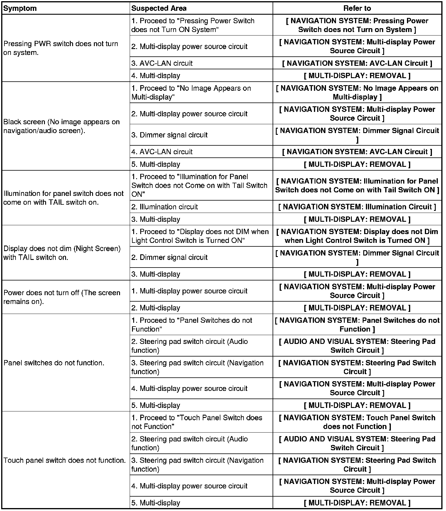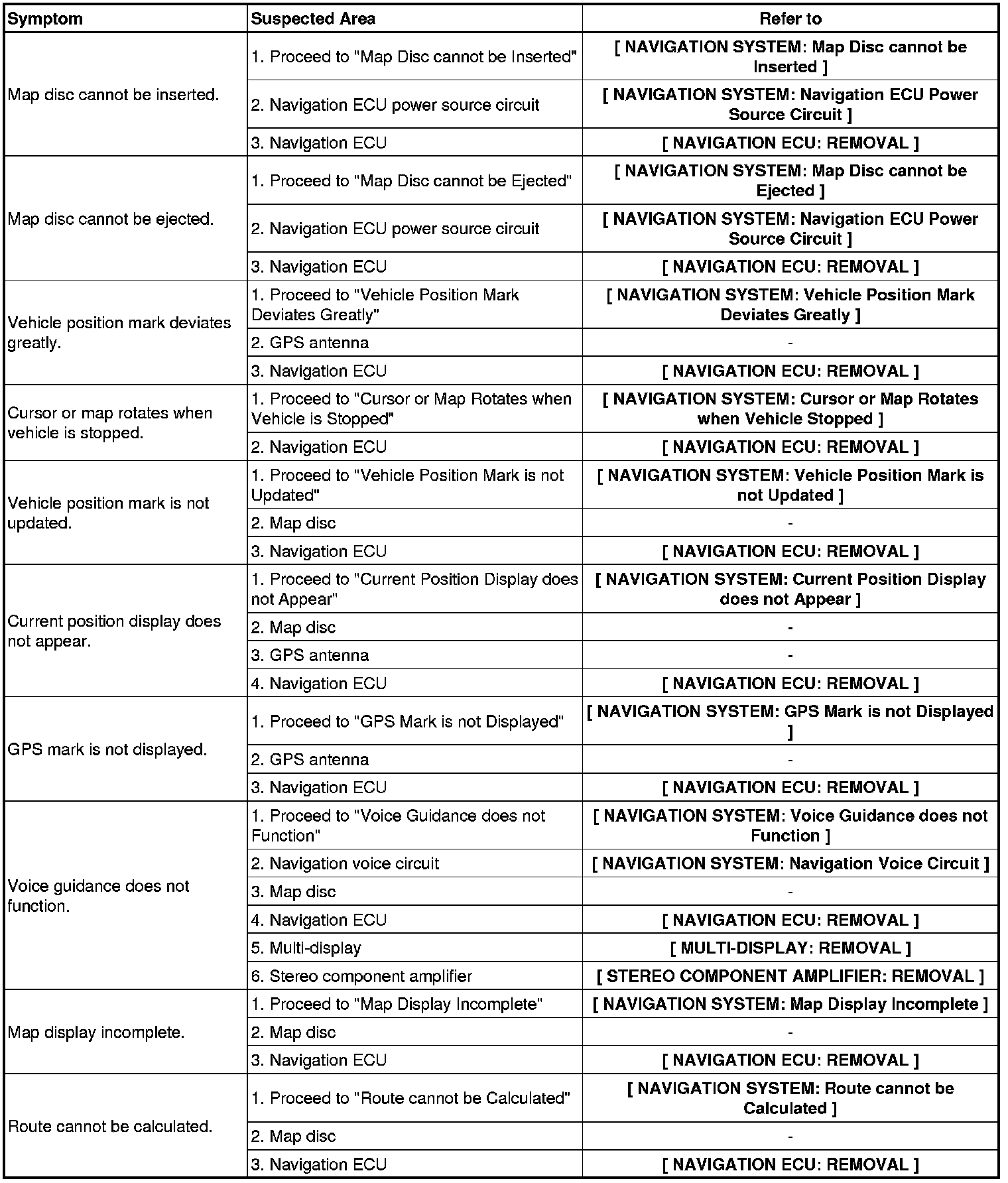 - Before inspecting the suspected areas listed in the table below, check the DTCs.