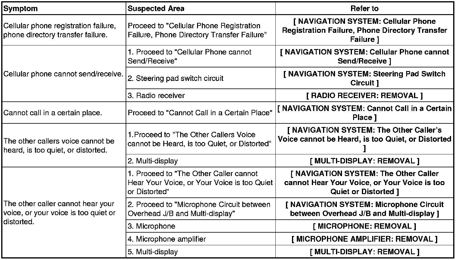 - Methods used to verify the cause of the problem are listed in order of probability in the suspected area column.