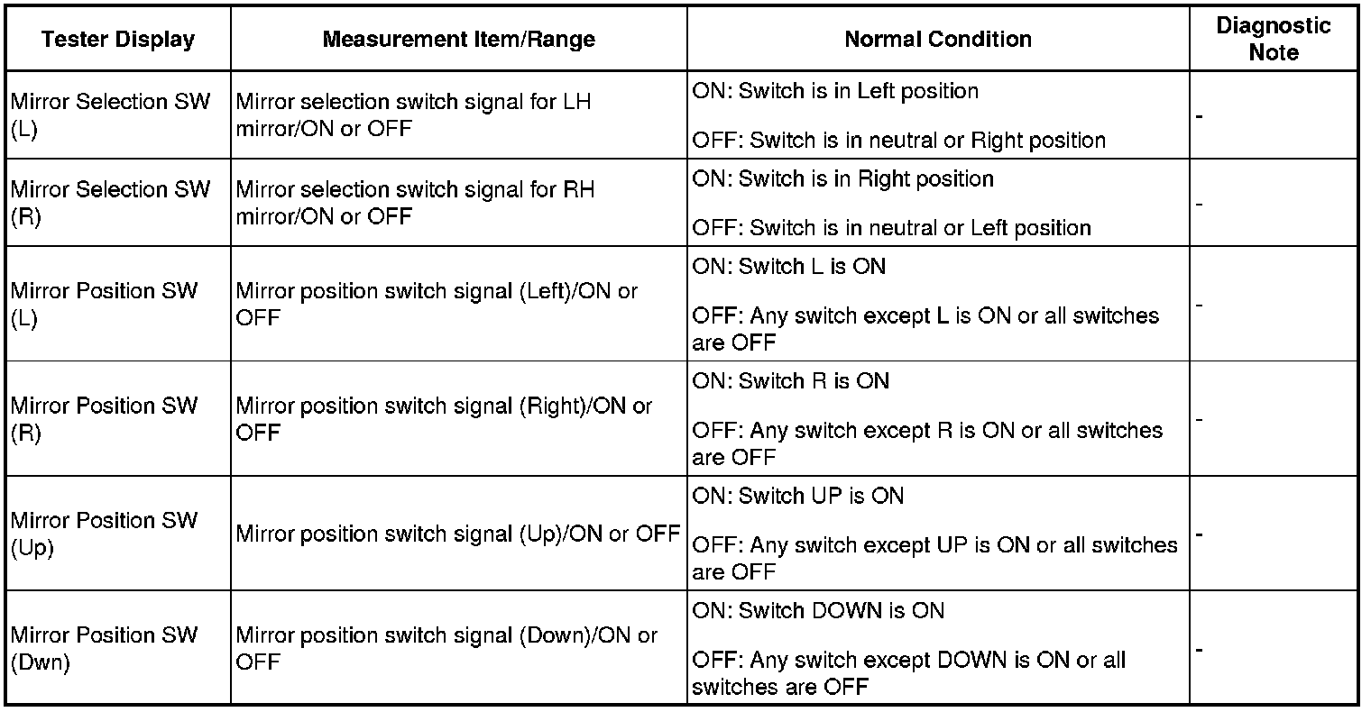 MIRROR: POWER MIRROR CONTROL SYSTEM (w/ Memory): Mirror Switch Circuit