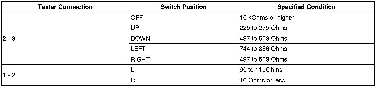 (b) Measure the resistance according to the value(s) in the table below when the switch is operated.