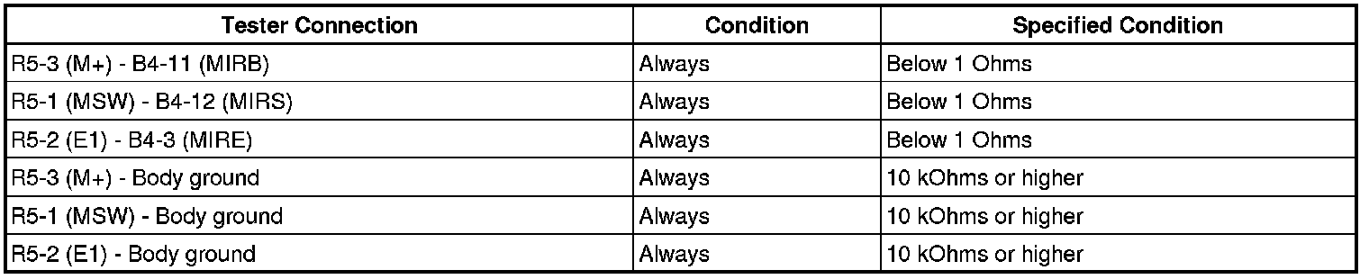 HINT: The power mirror control system is a part of the multiplex communication system. This system features shared communication wiring that reduces the wiring complexity of the communication lines. The first step in any repair is to confirm the proper operation of the communication system. Proceed with troubleshooting after the communication has been verified (See the Multiplex Communication System).