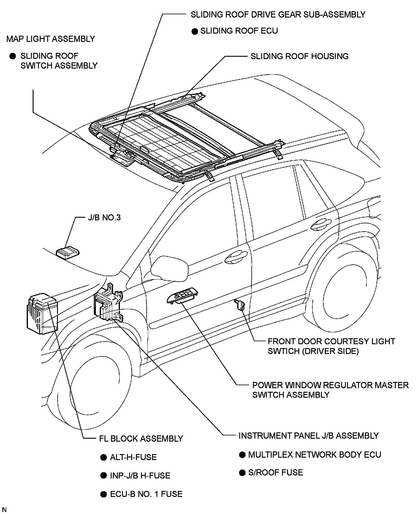 Sunroof / Moonroof Module: Locations