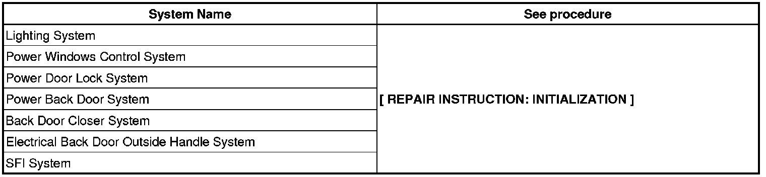 NOTE: When disconnecting the negative (-) battery cable, initialize the following system(s) after the cable is reconnected.