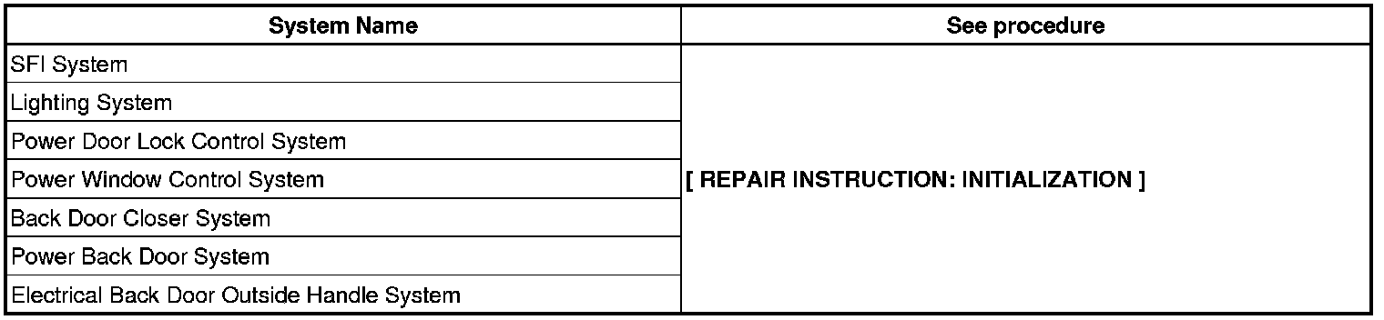 NOTE: When disconnecting the battery terminal, initialize the following systems after the terminal is reconnected.