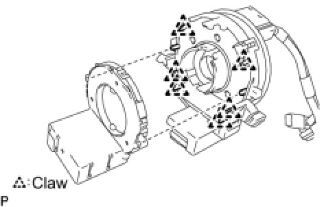 (a) Disengage the 6 claws and remove the steering angle sensor from the spiral cable sub-assembly.