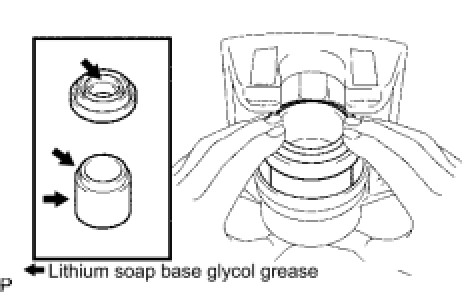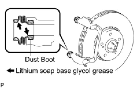 (a) Apply lithium soap base glycol grease to the seal surface of 2 new bushing dust boots.