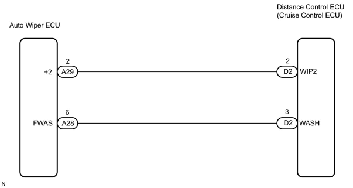 HINT: A wiper switch signal is sent to the distance control ECU via the CAN and BEAN. If there are any malfunctions in this circuit, check for DTCs in the CAN communication and multiplex communication systems. When the wiper is in the HI mode, the dynamic laser cruise control is automatically canceled and goes into the standby mode.