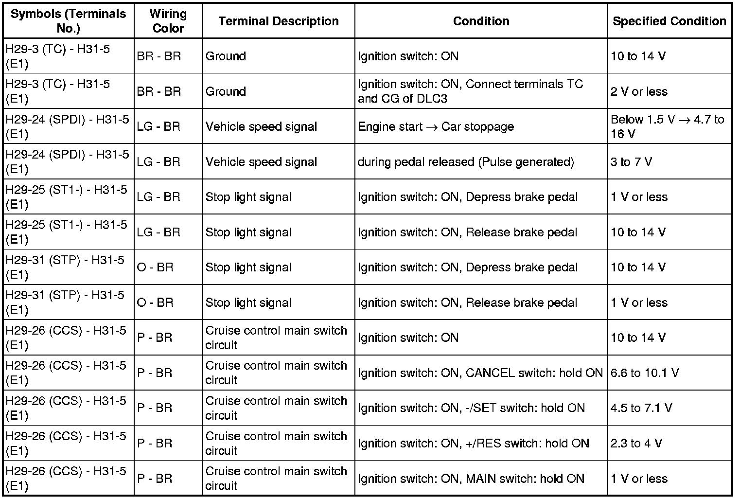 Pinout Values and Diagnostic Parameters