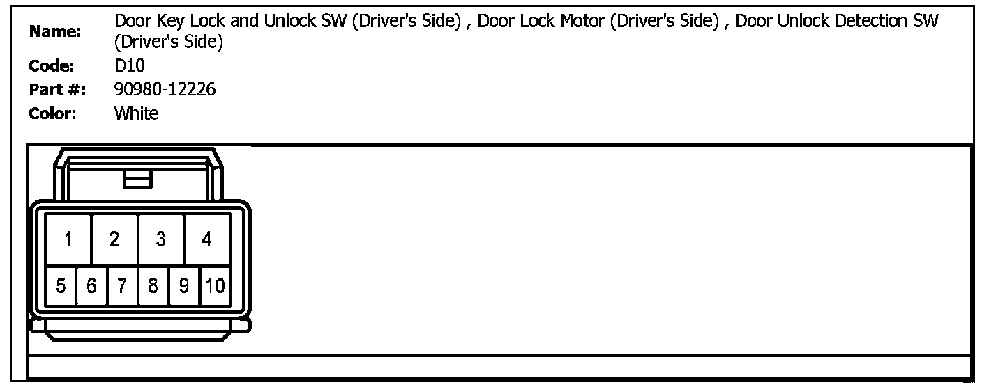 D10 (Door Key Lock And Unlock SW (Driver's Side), Door Lock Motor (Driver's Side), Door Unlock Detection SW (Driver's Side)):