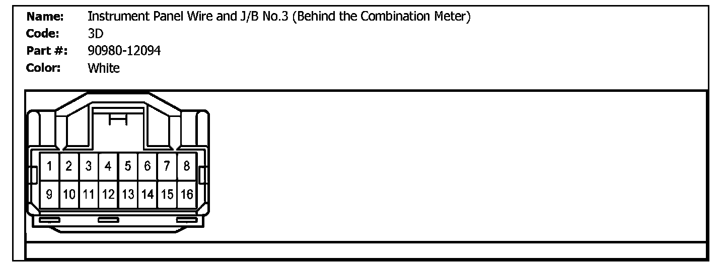 3D (Instrument Panel Wire And J/B No.3 (Behind The Combination Meter)):