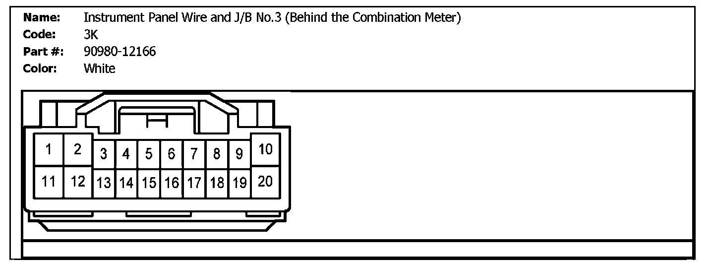 3K (Instrument Panel Wire And J/B No.3 (Behind The Combination Meter)):