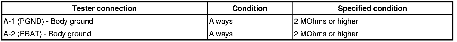(b) Using a megohm tester, measure the resistance according to the value(s) in the table below.