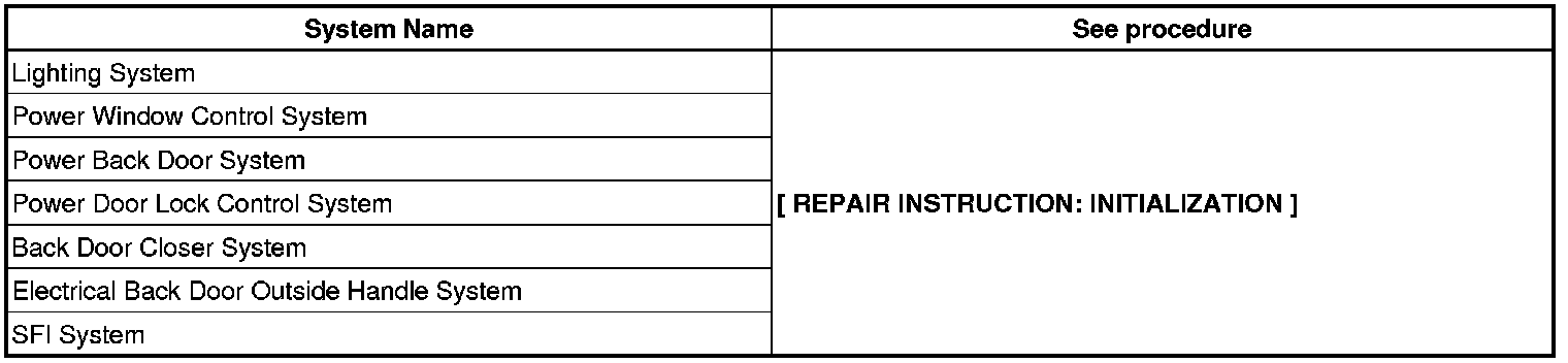 (a) When disconnecting the negative (-) battery terminal, initialize the following systems after the terminal is reconnected.