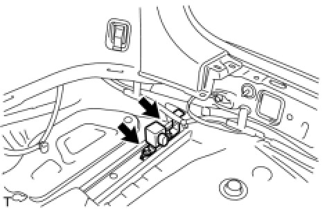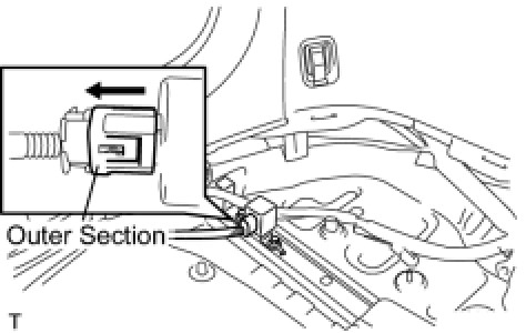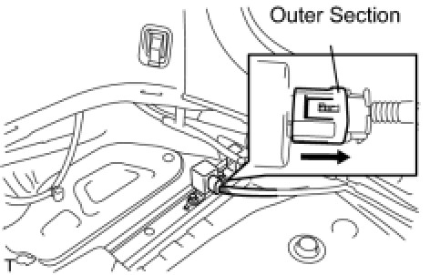 (1) Move the outer section to the wire harness side as illustrated, then disconnect the rear circuit breaker sensor (LH).