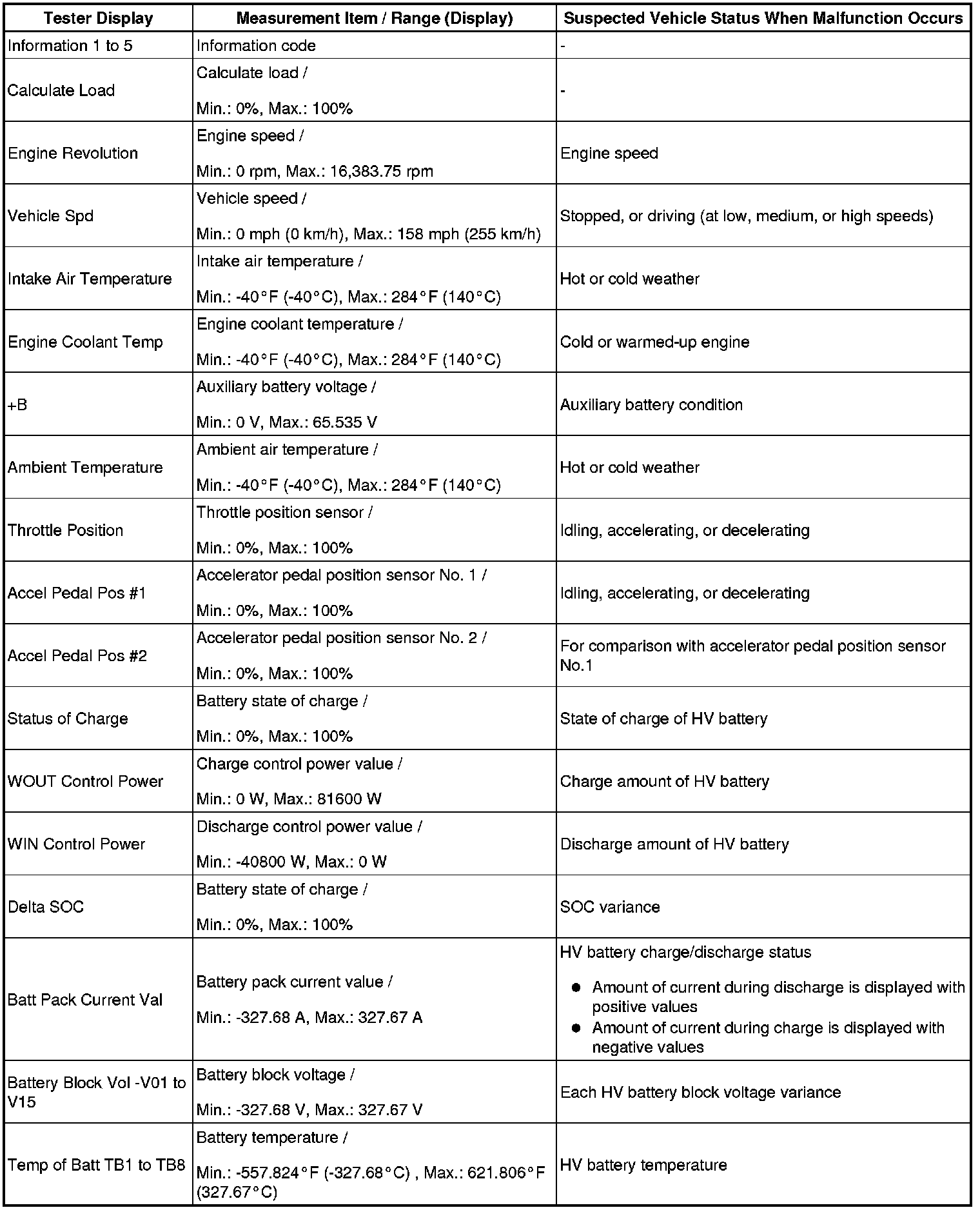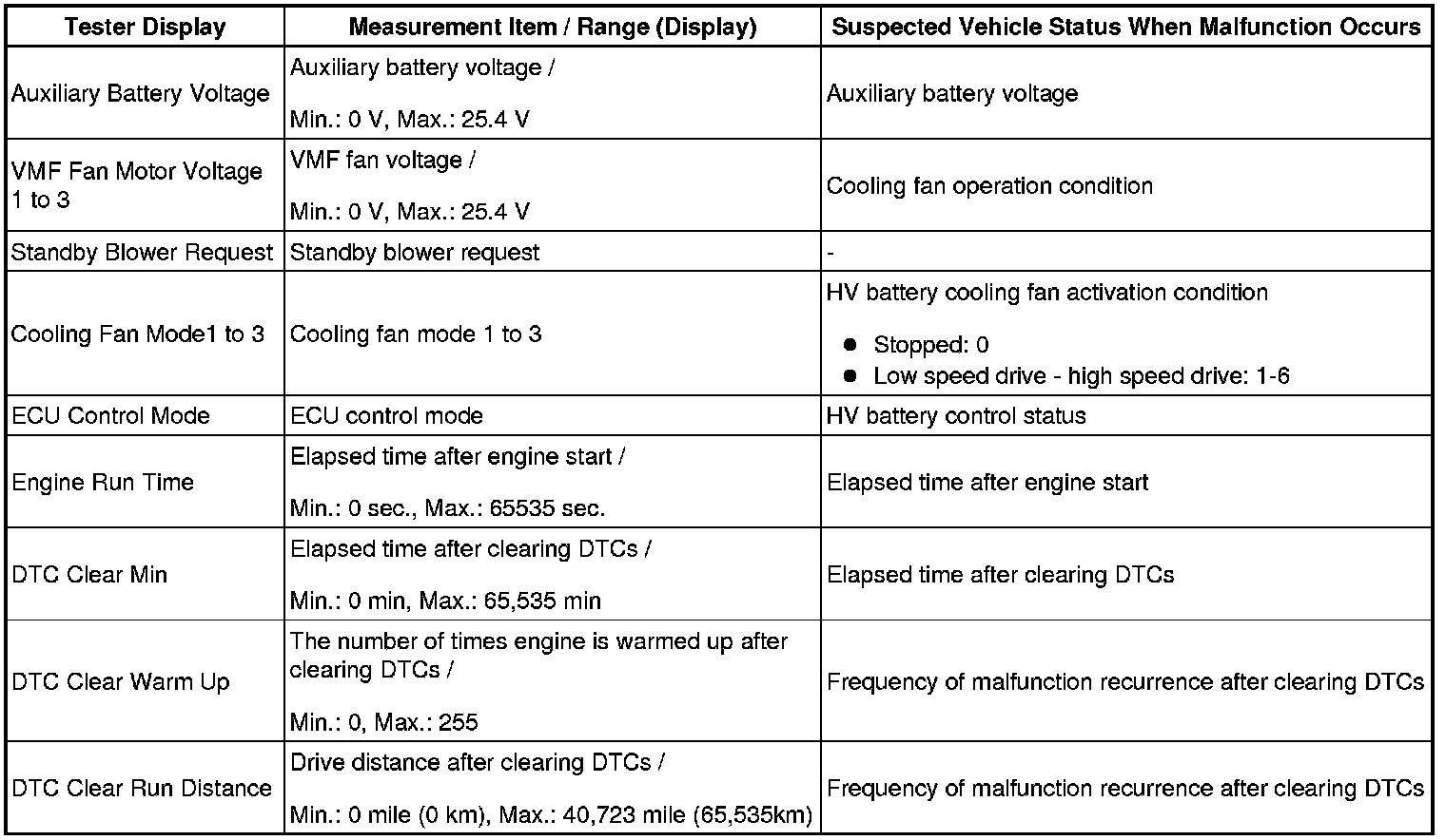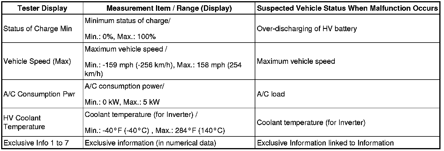 HINT: Similar to freeze frame data, the HV control ECU also records vehicle and driving condition information as INFORMATION the moment a DTC is stored.