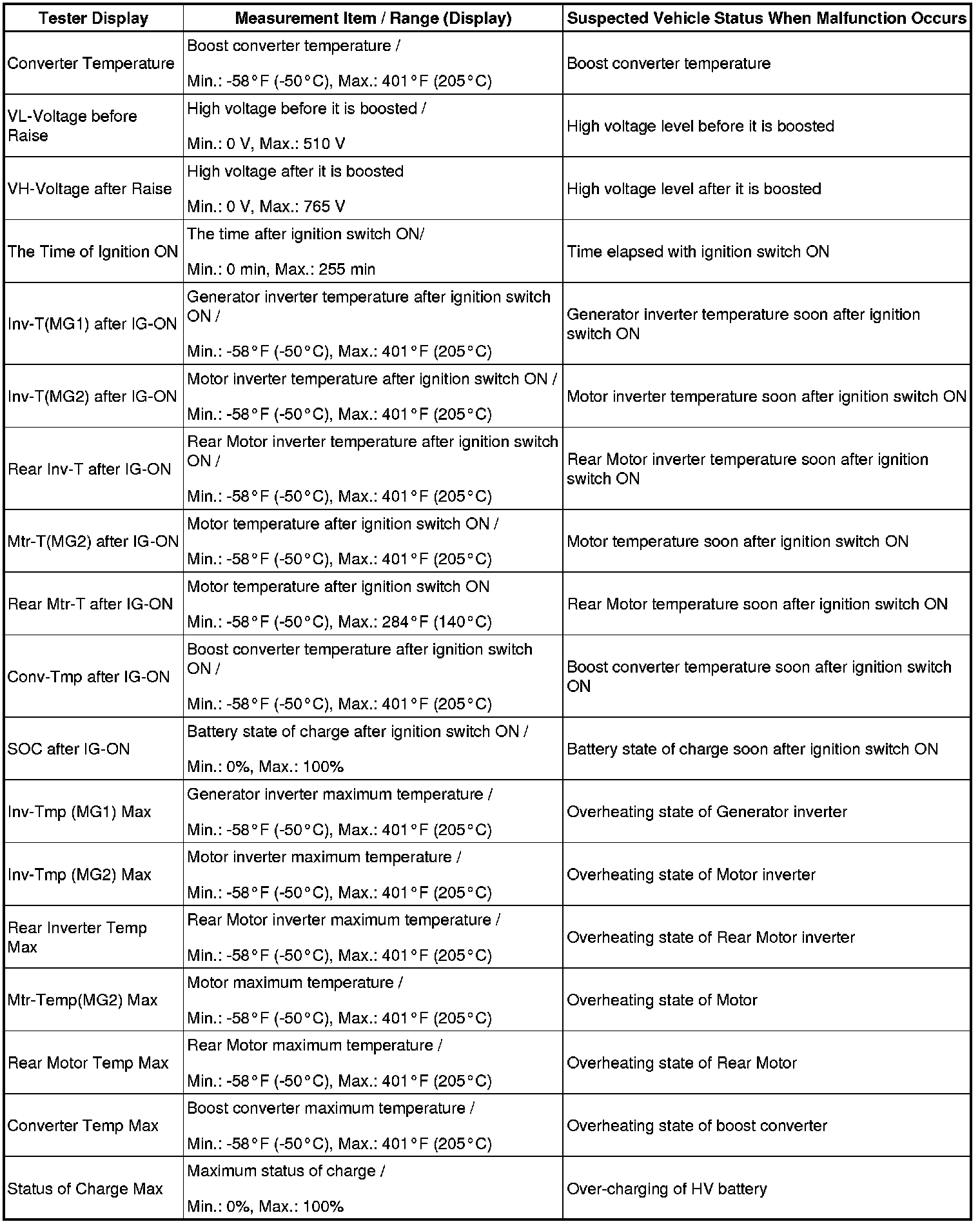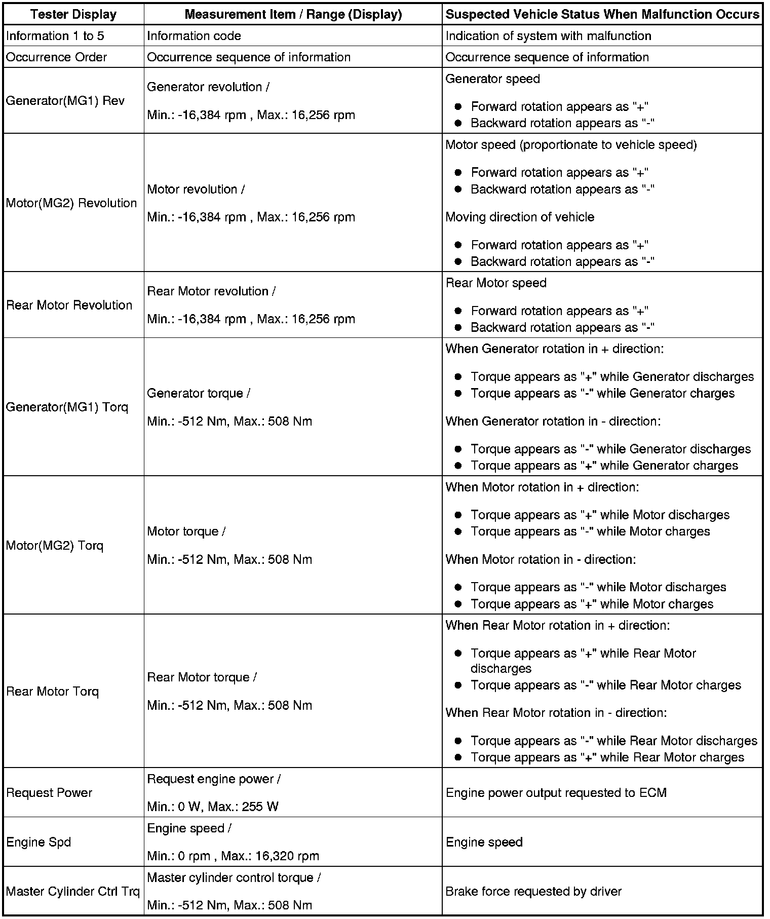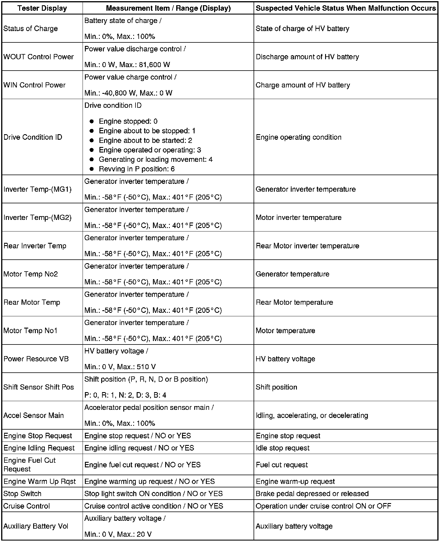 P310 HYBRID VEHICLE CONTROL: HYBRID CONTROL SYSTEM: INFORMATION / FREEZE FRAME DATA