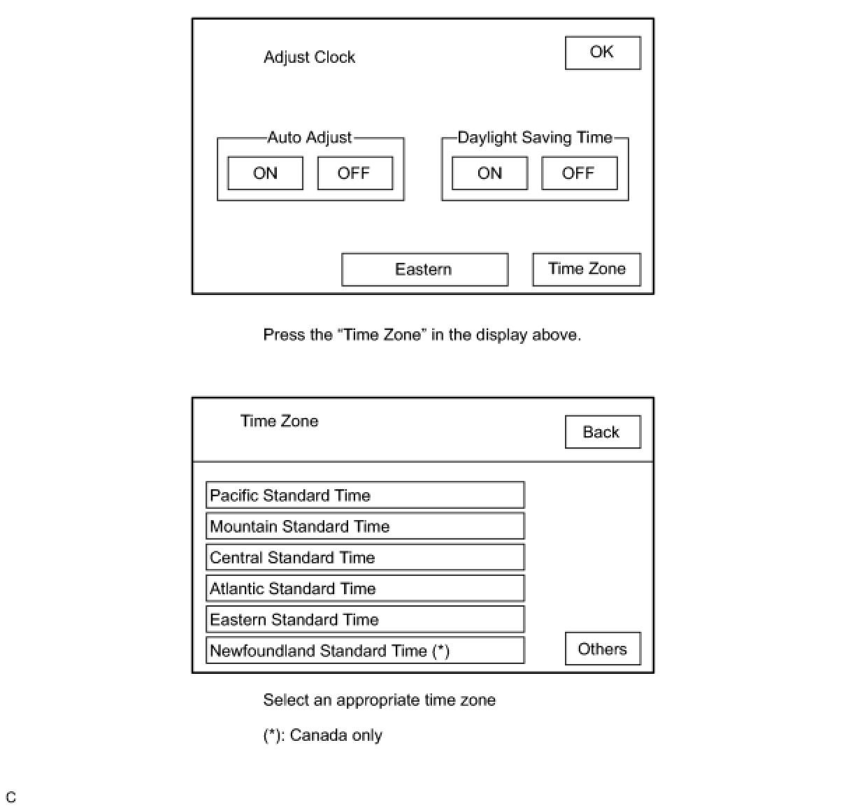 (c) TIME ZONE SETTING (w/ Navigation System)